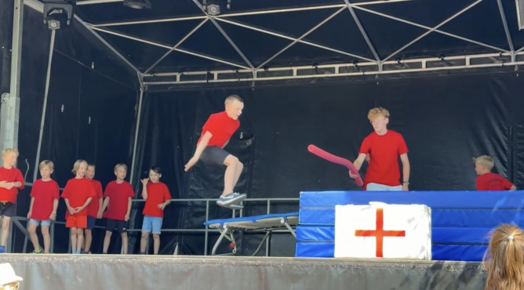 Die Jungenturngruppe präsentierten danach eine unterhaltsame Turnnummer am Minitrampolin, die Mädchenturngruppe einen Tanz zu dem Song „So good!“.